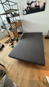 Verkaufe ein gut erhaltenes graues Schlafsofa, ideal als Gästebett. Es lässt sich einfach ausklappen. Inklusive sind zwei passende Kissen. Das Sofa ist in einem sehr
