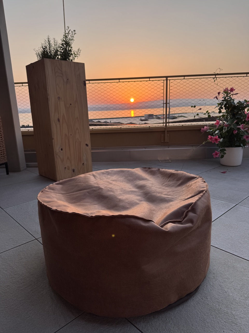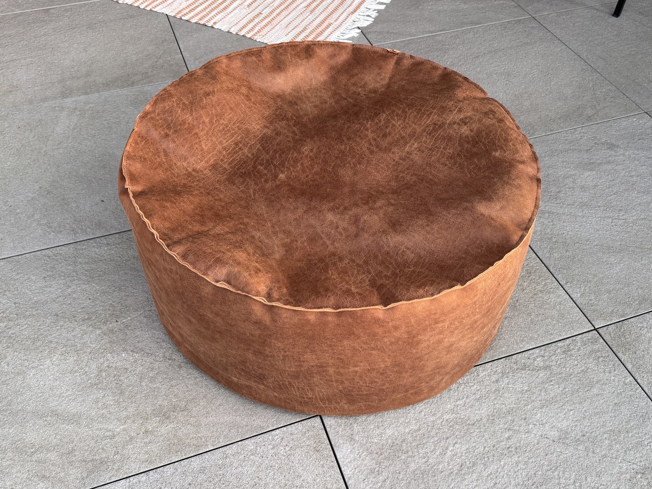 Der Hocker aus weichem, aber dennoch robustem Vintage Leder ist bequem und unverwüstlich. Kügelchen zum Nachfüllen werden mitgeliefert.