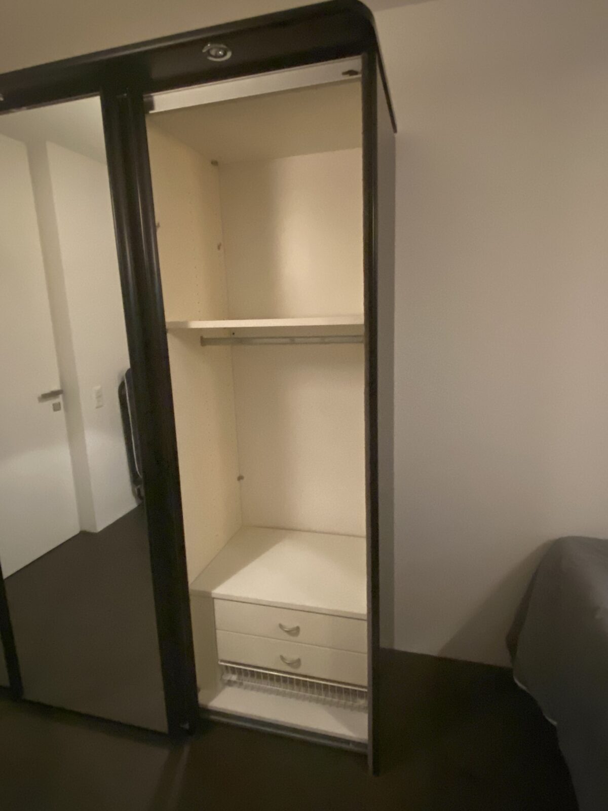 diversen Schubladen, Auszug für Krawatten/Gürtel, diverse Tablare und Kleiderbügelstangen.