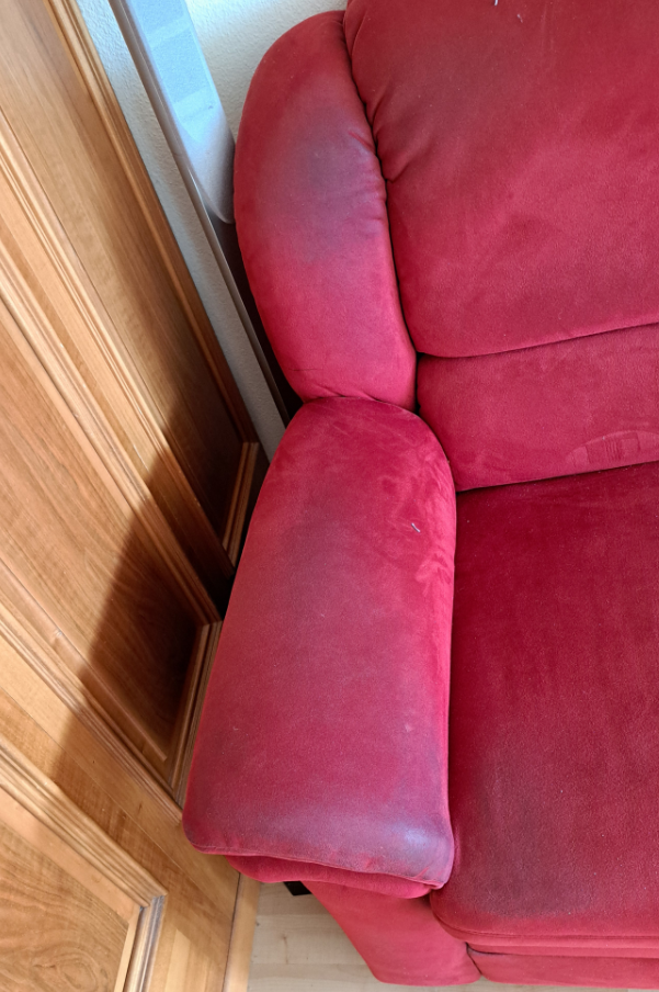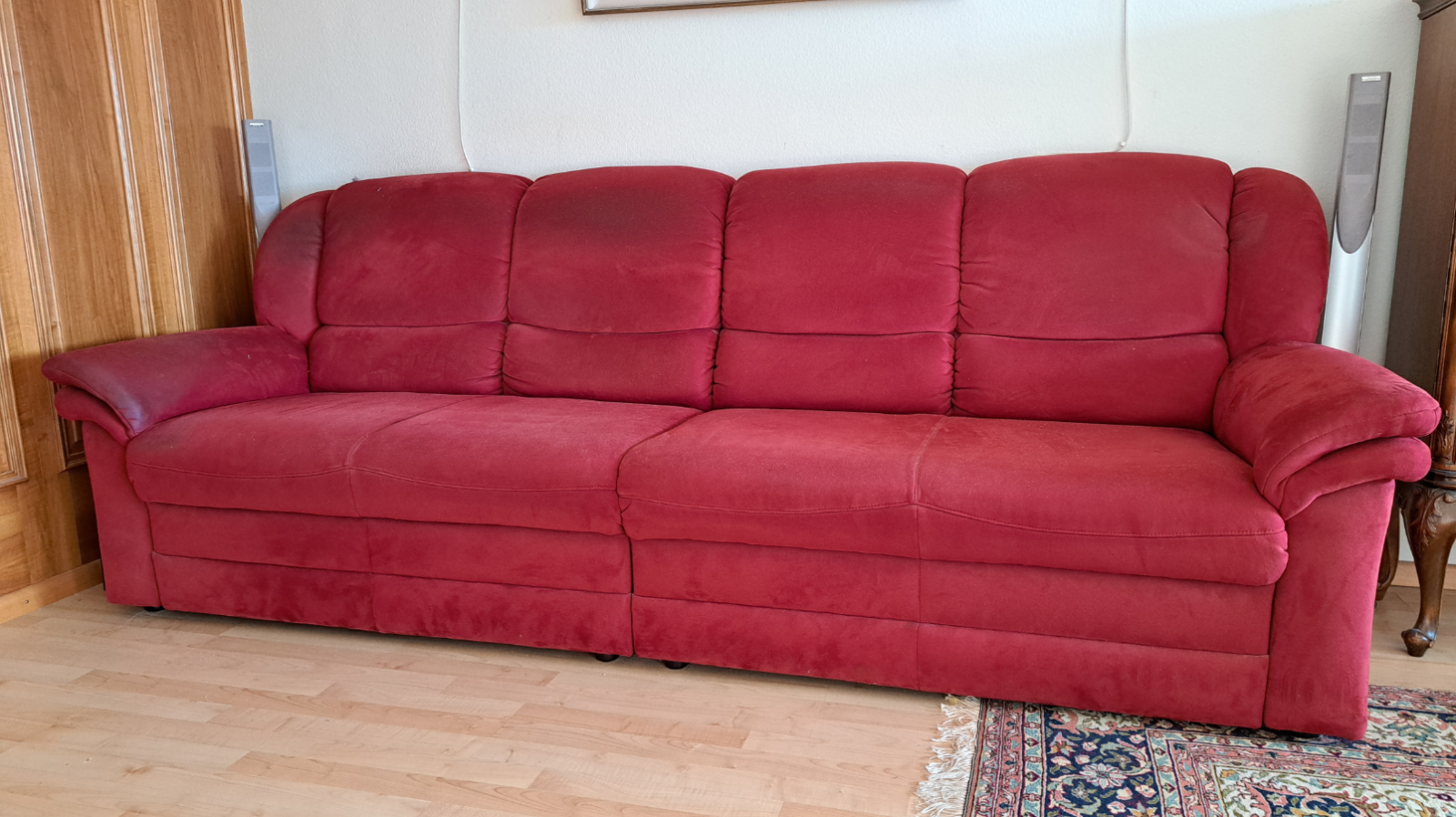 Grosses Sofa (glaub Kunstleder weinrot) gratis abzugeben.