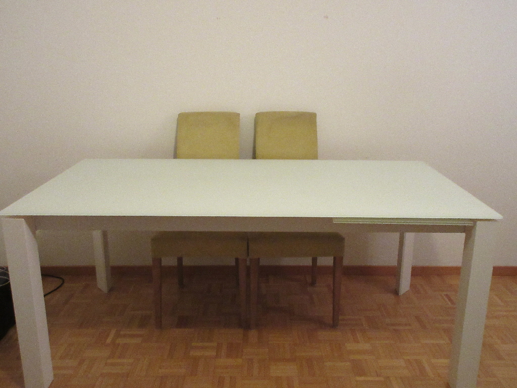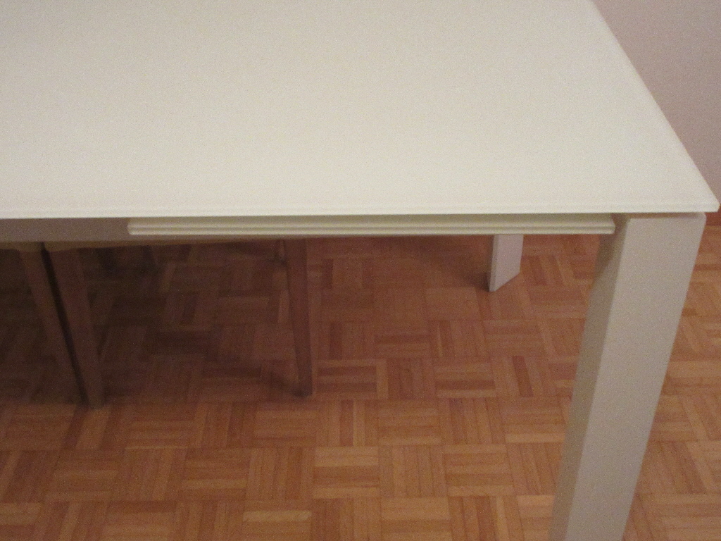 zeitloser Esstisch mit Glasplatte (matt), sandgestrahlt, ausziehbar zum Schnäppchen von CHF 200.00