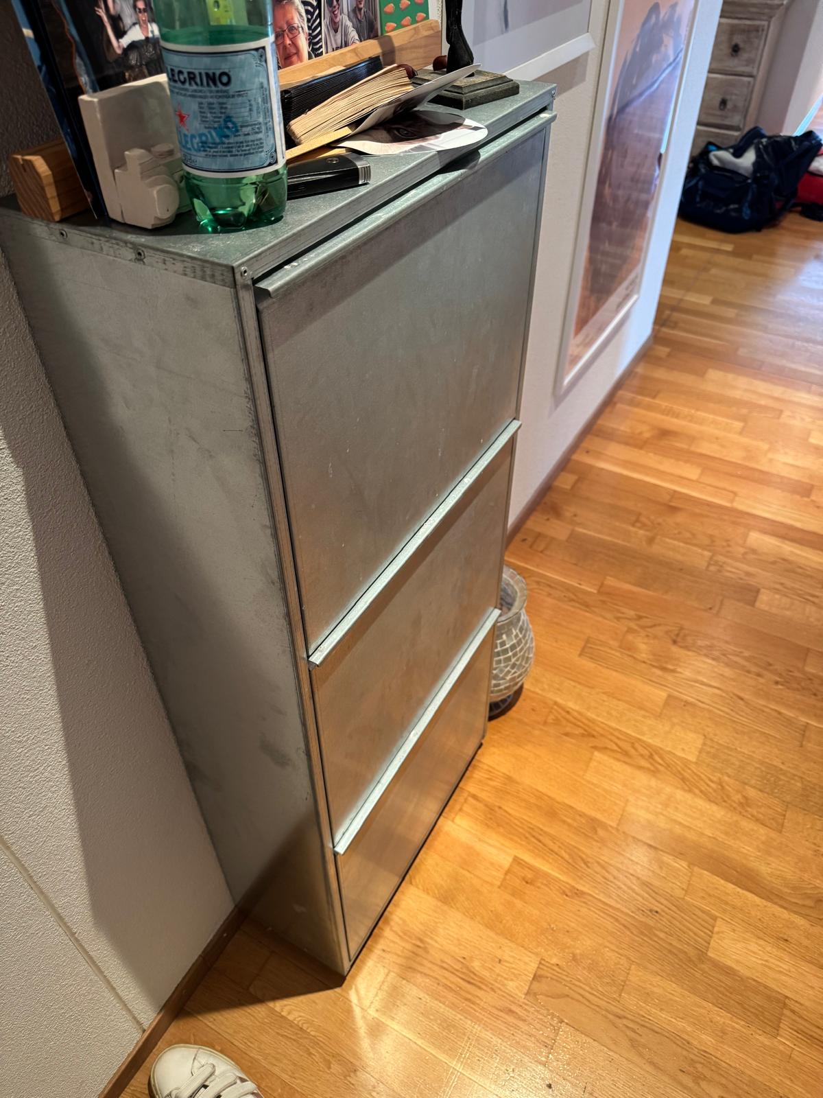 2 gebrauchte Schuhregale in Blechausführung, gebraucht. Gratis abzugeben. Selbstabholung